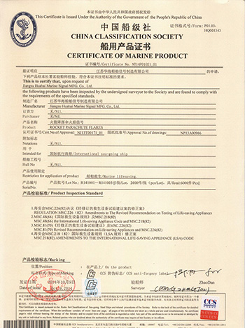Jiangsu Huahai Ship Signal Manufacturing Co., Ltd. was established in 2009. It is a marine fireworks signal production enterprise formed by the integration of four marine fireworks signal manufacturers in Jiangsu Province, namely the former Haimen Huahai Water Safety Equipment Co., Ltd., the former Dongtai Welfare Fireworks Signal Factory, the former Haimen Jianghai Ship Equipment Co., Ltd., and the former Qidong Highway Traffic Signal Rod Factory. Huahai Company has a good reputation among domestic and foreign customers due to its large scale, strong product professionalism, high quality, excellent service, and good reputation. The company has established a comprehensive quality assurance system and has passed the CCS ISO9001 quality system certification. Its products are strictly developed, tested, produced, and inspected in accordance with the latest international standards such as SOLAS, MSC.48 (66), MSC.81 (70), MSC.200 (80), MSC.218 (82), and MSC.226 (82). The product has been recognized by multiple ship inspection agencies such as China Classification Society (CCS), French Classification Society (BV), and Russian Ship Registry (RS). The product is currently exported to countries such as Japan, South Korea, Singapore, India, Vietnam, Mexico, France, Australia, etc. The company has strong technical capabilities and is committed to the research and development of new products, which have won multiple national patents and technology awards. The company always stands at the forefront of technology in the research and development of life-saving equipment, bringing customers higher quality and safer products.