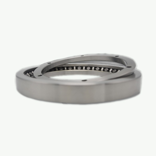 交叉圓錐滾子軸承包含有兩列相互垂直的軸承滾道和滾子組成。滾子在滾道上方向交替排列,在截面高度內,略超過單列軸承的高度。另外,軸承的傾斜角和圓錐幾何形狀會令各滾道的承載中心沿著軸線受到保護,最后,總的有效軸承距離范圍比軸承本身的寬度要大很多倍。